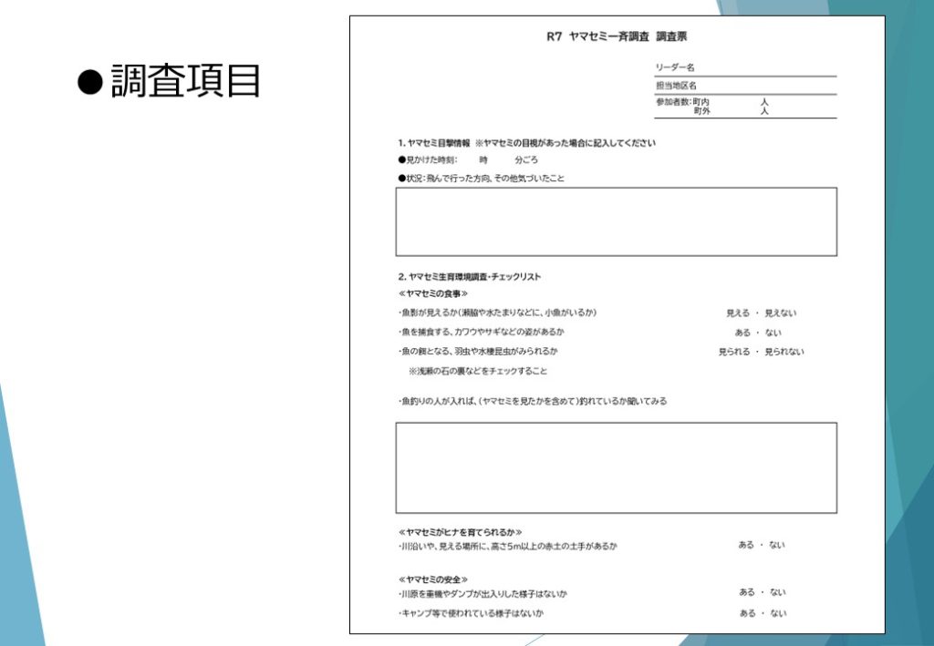 2025年6月8日(日)に行った「第2回ヤマセミ生息状況一斉調査」についての調査報告を掲載いたします。